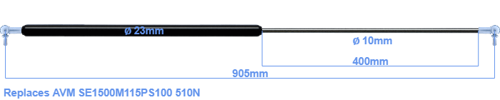 Replacement gas spring for the AVM SE1500M115PS100 510 Newton. This fits a (possibly already present) ball with a diameter of 13mm. A corresponding ball is included. Brand: HAHN, a Stabilus company.