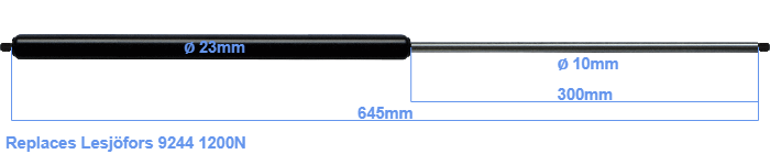 Replacement gas spring for the Lesjöfors 9244 1200 Newton. Thread: M8. Brand: HAHN, a Stabilus company.
