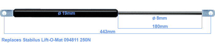 Replacement for Stabilus Lift-O-Mat 094811 0250N